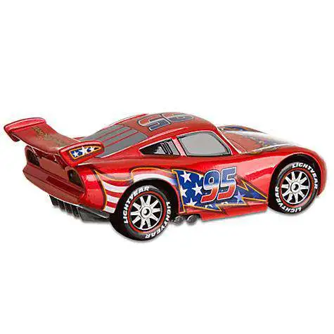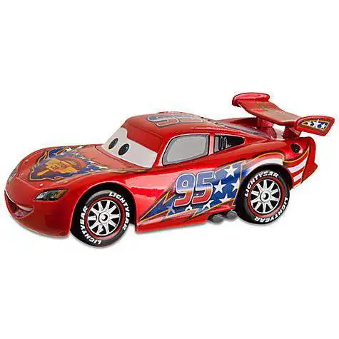 This special Chase Edition Stars & Stripes Lightning McQueen Cars 2 Die Cast Car features a very patriotic number 95! There’s only a limited quantity of Lightning with this alternative paint scheme so do your patriotic duty and get one while you can!buy = ‘Y’;