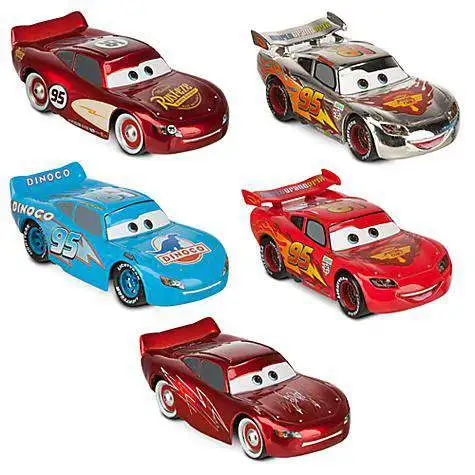 Lightning McQueen shows off his colorful personality in this McQueen-O-Rama Cars Die Cast Set. Featuring Lightning sporting five different paint finishes, the set includes the Exclusive Chrome McQueen that will make your Cars collection gleam!