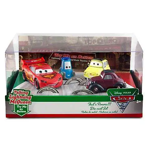 The cast of Cars 2 get all romantic with this That’s Amore!!! Cars 2 Die Cast Set. Uncle Topolino, Luigi and Guido give this set an Italian theme, while Topolino and Lightning McQueen both talk so you’ll love this That’s Amore!!! set even more.