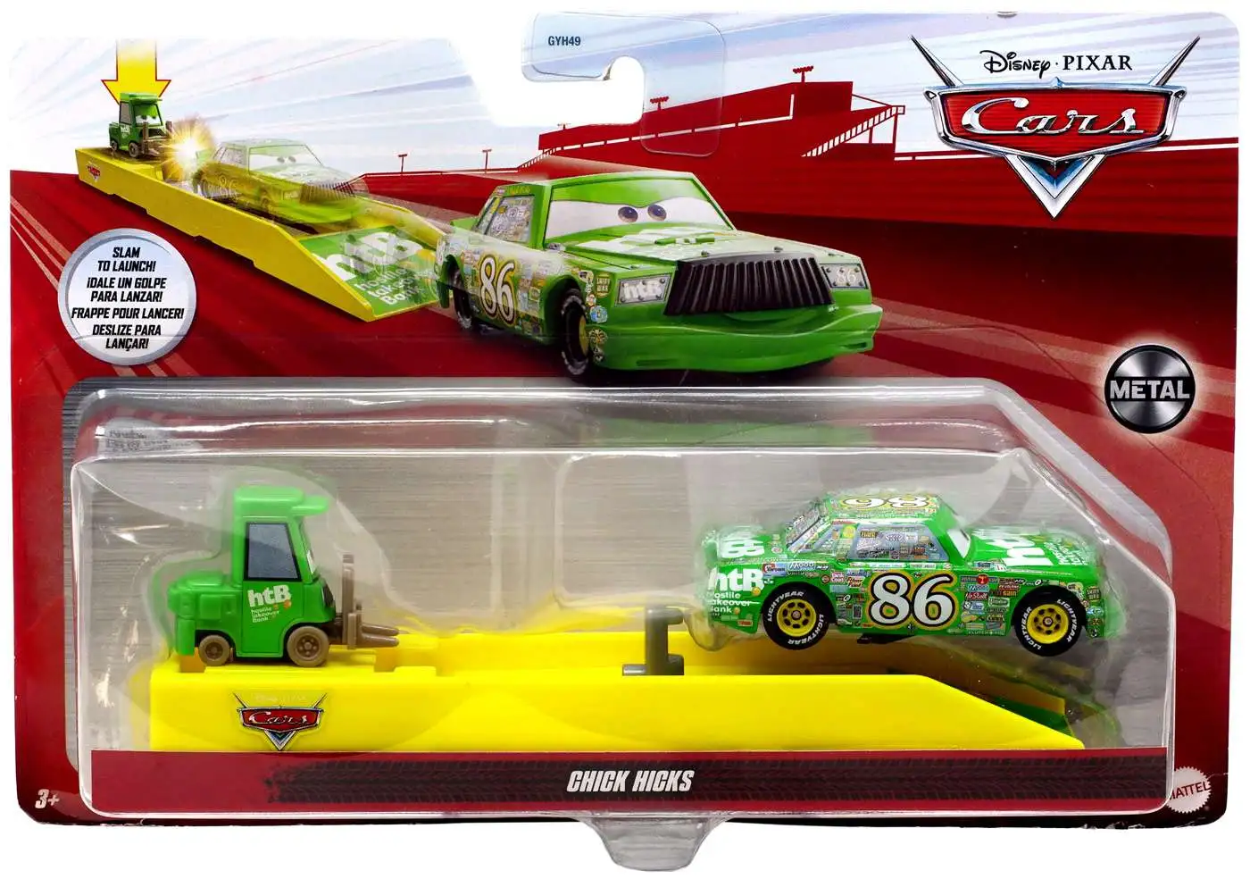 This super colorful Disney and Pixar’s Cars launcher and car combo is revved up and ready to race with extreme bursts of speed! Just place the racer on the launcher, press down on the attached pit crew member, and watch your favorite Disney and Pixar’s Cars character take off at top speeds! Multiple launcher/car pairs are available (sold separately), and they connect for side by side racing competition. Includes one launcher and one die-cast vehicle.