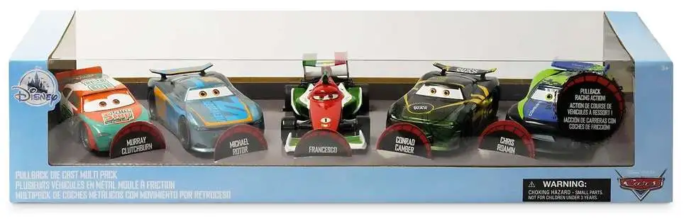 The heat is on for this set of five die cast toy cars with a pullback function that shifts the play into high gear. Part of the Cars Pull ‘N’ Race Series, this pack of hot rods is ready-to-roll on the track or into the collector’s showroom.