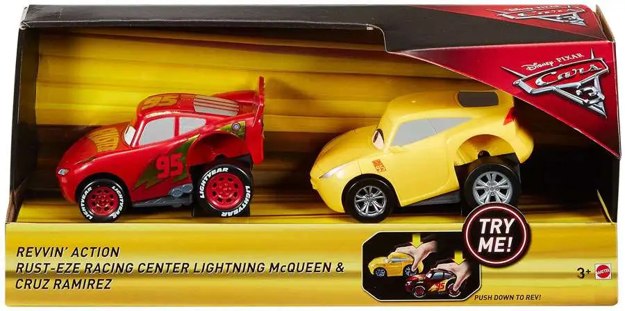 Cruz Ramirez and Lightning McQueen are speeding to you with new racing action! Recreate thrilling scenes from Disney/Pixar Cars 3 with each vehicle’s exciting “performance” feature: push down on the back of the car and see it rev and race off. Perform time trials, host practice competitions and enjoy new movie fun right out of the pack! These compelling, colorful racers are loaded with iconic, movie-inspired details fans love and will make excellent additions to your collection! Colors and decorations may vary.