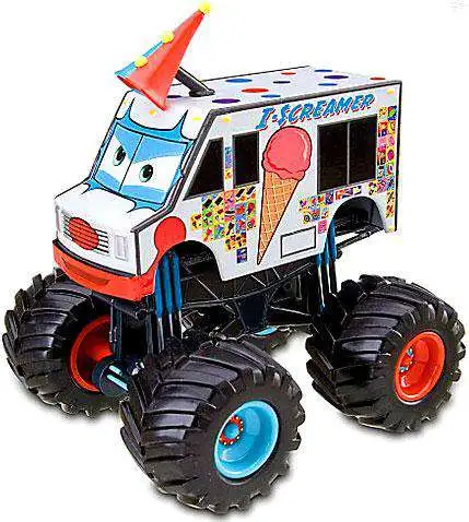 Our Cars Toon I-Screamer Monster Truck serves up lots of deliciously big fun. The clown-styled ice cream van has been given a monster truck makeover with giant tires and moving axles for real monster track motion, making it the wheel deal.