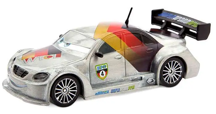 German speed ace Max Schnell gets a makeover with this special Chaser Series die cast. The brushed silver metal body features a paint scheme with the colors of his national flag. It’s a great addition to any Cars collection.