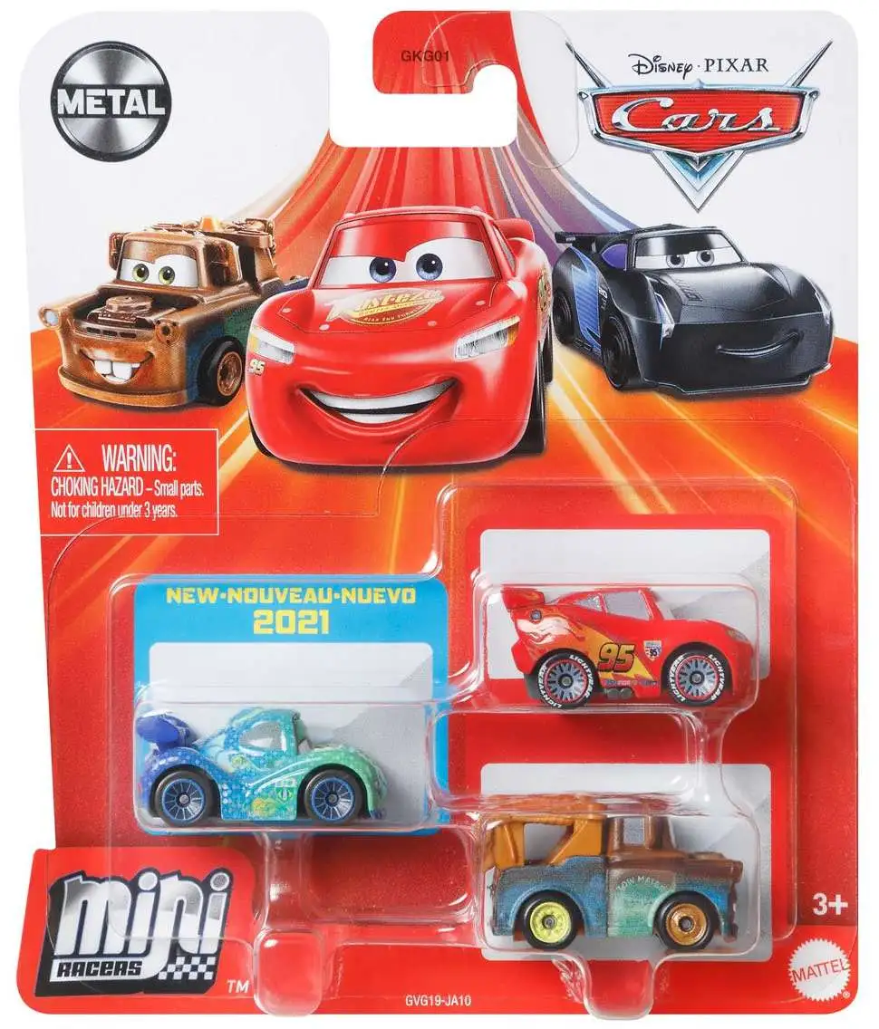 These exciting Disney and Pixar Cars mini vehicles are ready to race right out of the pack! Each pack contains three compact die-cast racers, including at least one vehicle unique to the pack! It’s an exciting set of 3 cars that feature big personality designs, die-cast bodies and rolling wheels. A great collectible gift for Cars fans!