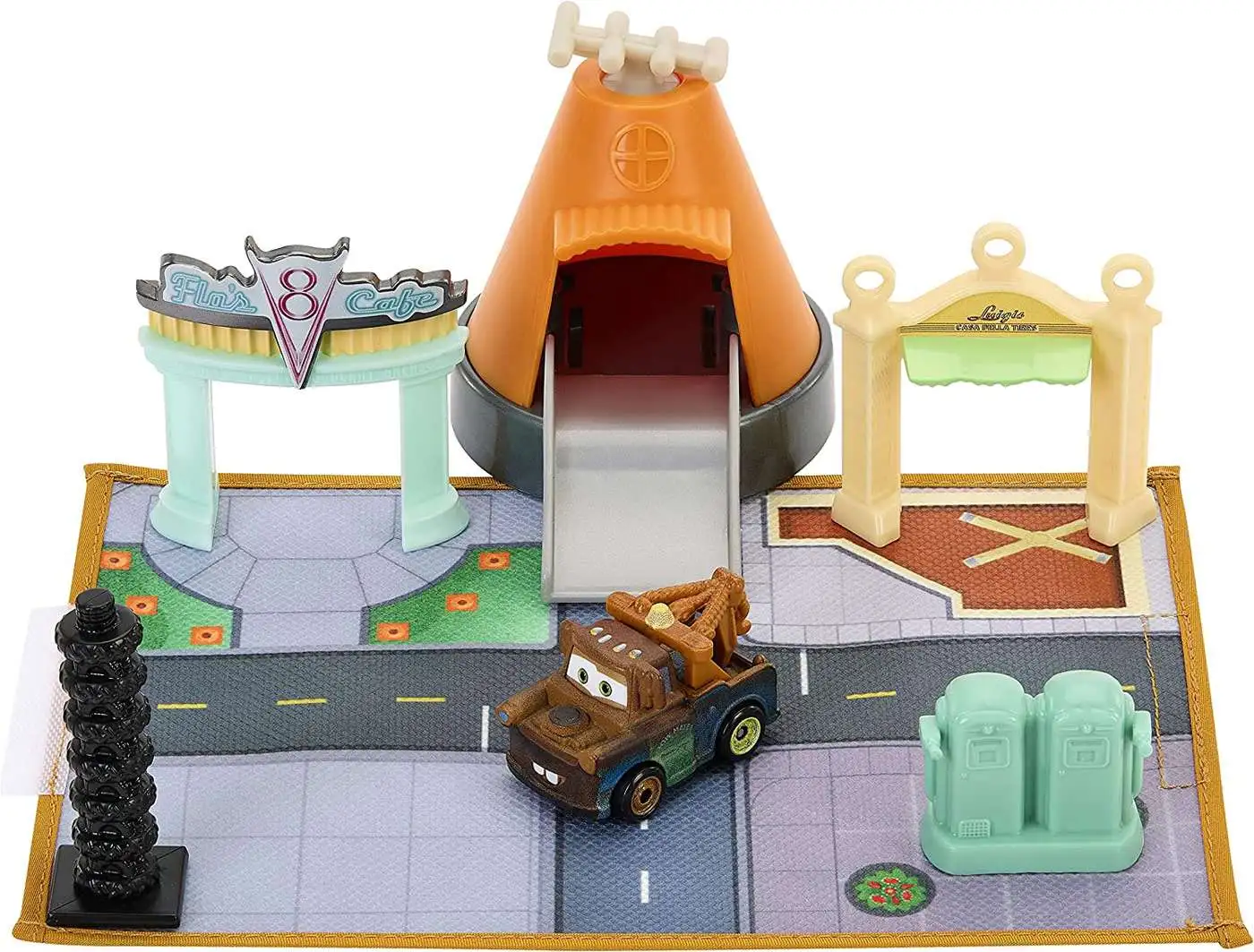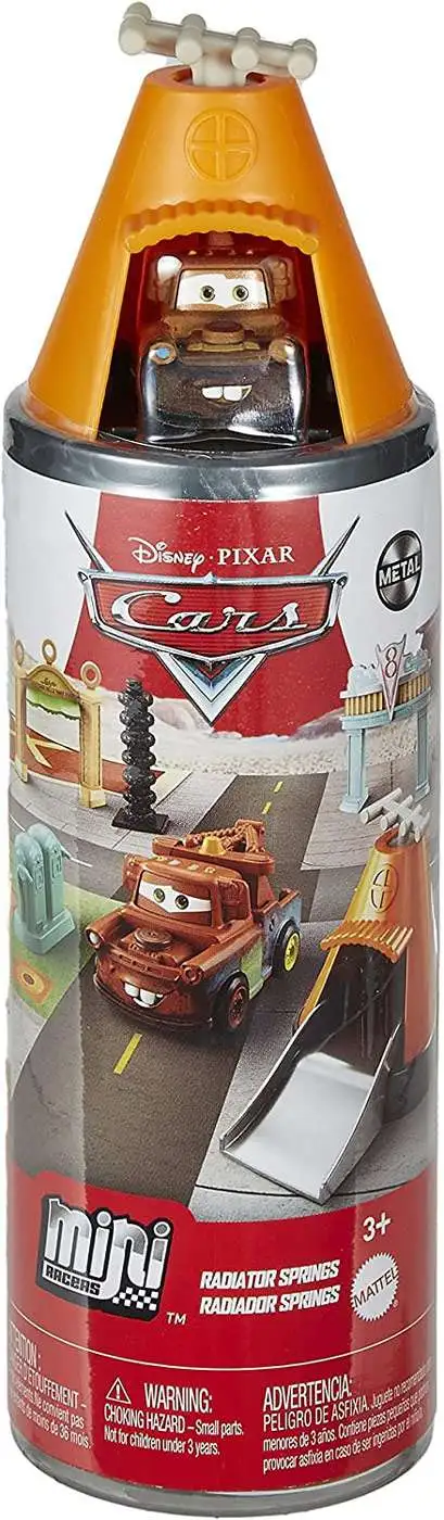 Kids can recreate favorite scenes with this Disney and Pixar’s Cars Mini Racers On-the-Go playset inspired by Radiator Springs moments from the movies. The portable set contains a mini Mater die-cast vehicle, storytelling accessories and a playmat. The compact cars are the perfect size for collecting and playing at home and on the go, and the can-shaped packaging doubles as storage with a carrying handle that is also a play piece!
