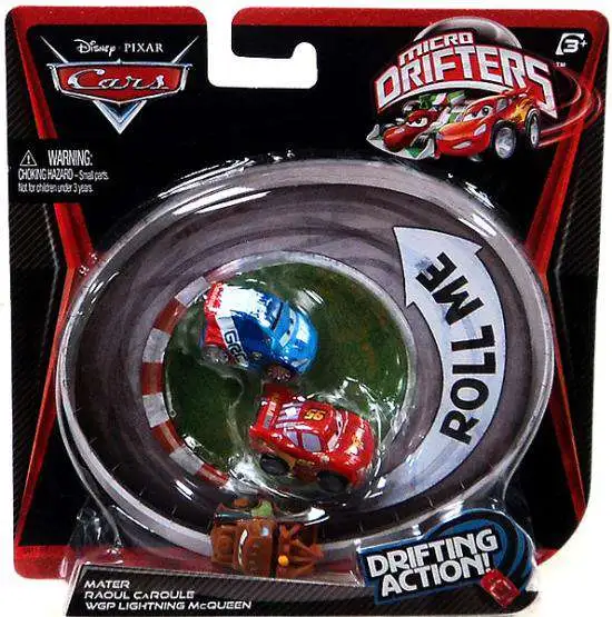 These small scale vehicles feature ball-bearing technology that allows them to race, drift and swarm-just like they do in the DisneyoPixar Cars films. Sold in packs of three, kids will want to collect them all! Pack Includes: Mater, Raoul CaRoule & WGP Lightning McQueen.buy = ‘Y’;