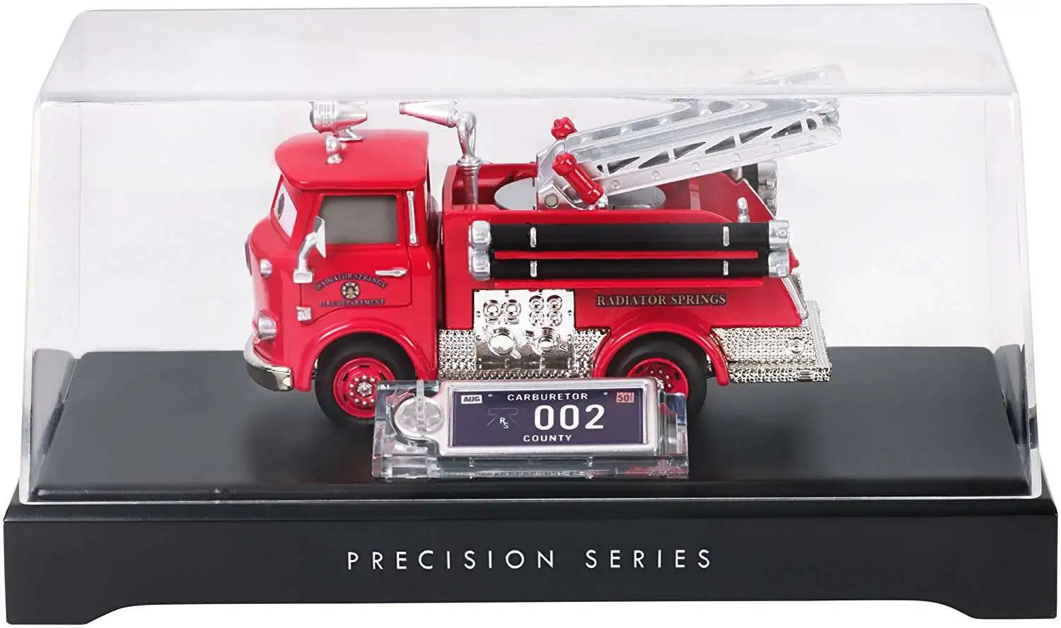 Enhance your Disney/Pixar cars collection with this exciting premium die-cast red. The 1:55 scale Firetruck features true-to-movie decos, rubber/PVC tires and a moving part that highlights his personality. Each iconic vehicle in the full assortment has a personalized die-cast license plate and comes with an acrylic display case! put them all together and recreate scenes from cars, cars 2 and cars 3! each vehicle sold separately, subject to availability. Colors and decorations may vary.