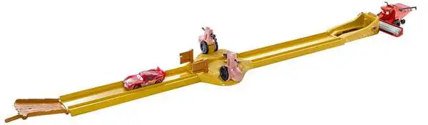Recreate the memorable scene from the Disney Pixar movie Cars, where Lightning McQueen and Mater go tractor tippin’ in the field with this super fun track set. Includes Frank the Combine and Lightning McQueen cars.
