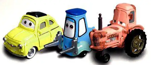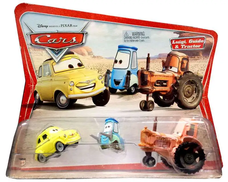 These unique character cars deliver great moments from the Disney/Pixar movie, CARS. Recreate your favorite scenes from the movie, or rev up your own fun with new scenarios. Includes three character vehicles Luigi, Guido & Tractor.buy = ‘Y’;