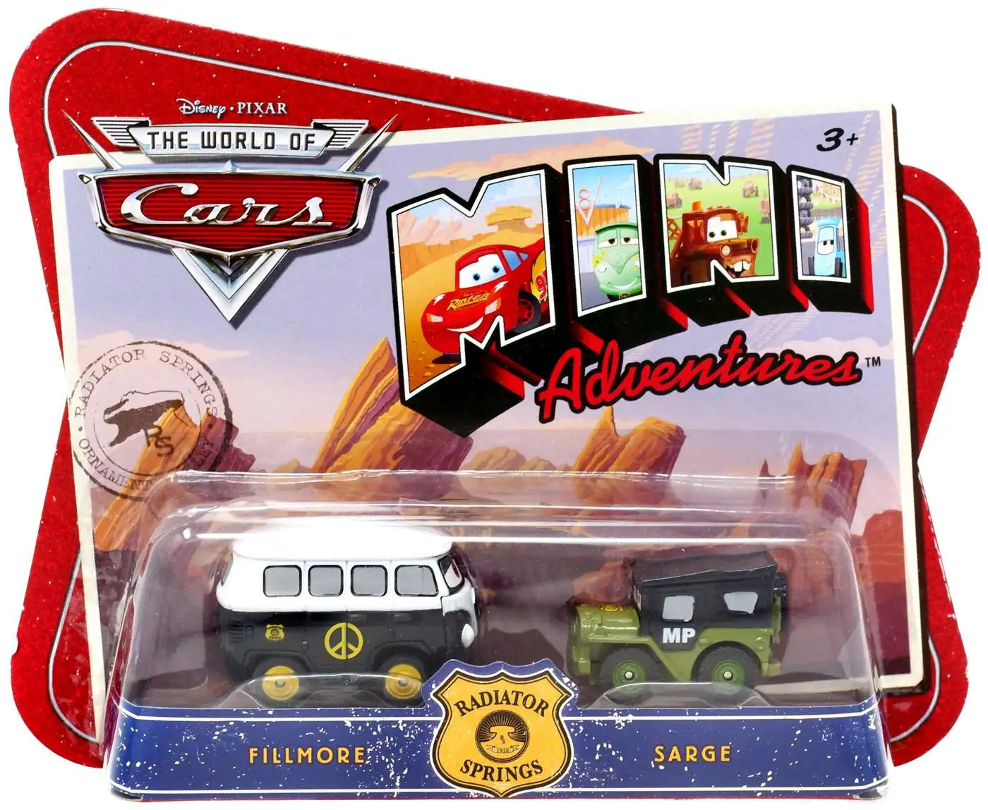 Inspired by the hit Disney/Pixar film CARS, the Mini Adventures Two-Packs feature your favorite characters in all new scale and proportions! Recreate your favorite scenes or create your own adventures. These exclusive mini pairs are raring to put the pedal to the medal in themes boys love, including military, fire rescue, and police.