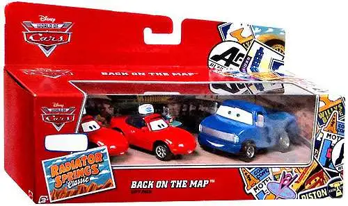 With these 1:55 scale die-cast characters from Disney Pixar Cars Radiator Springs Gift Pack, kids can recreate iconic moments in Radiator Springs. These new three-packs feature memorable scenes from the Cars movie.